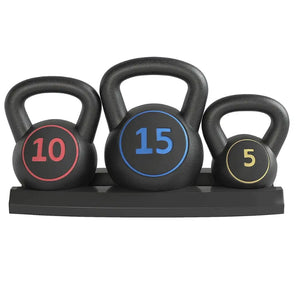 SmileMart 3-Piece HDPE Kettlebell Exercise Fitness Weight Set 5lbs / 10lbs / 15lbs Perfect Weights for Home Exercise