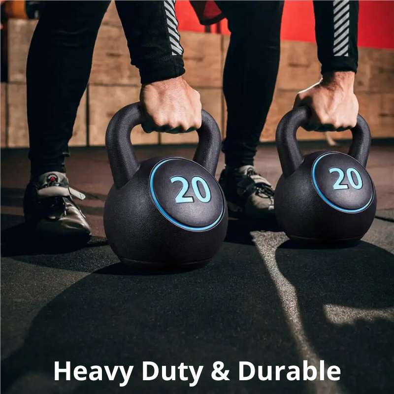 4 Piece Kettlebell Set Elevate your fitness regimen with our versatile Kettlebell Workout Set, comprising four weights of 5, 10, 15, and 20 pounds each, encased in a durable HDPE hard shell with cement filling. This cost-effective alternative to traditional cast iron kettlebells is designed to pr...
