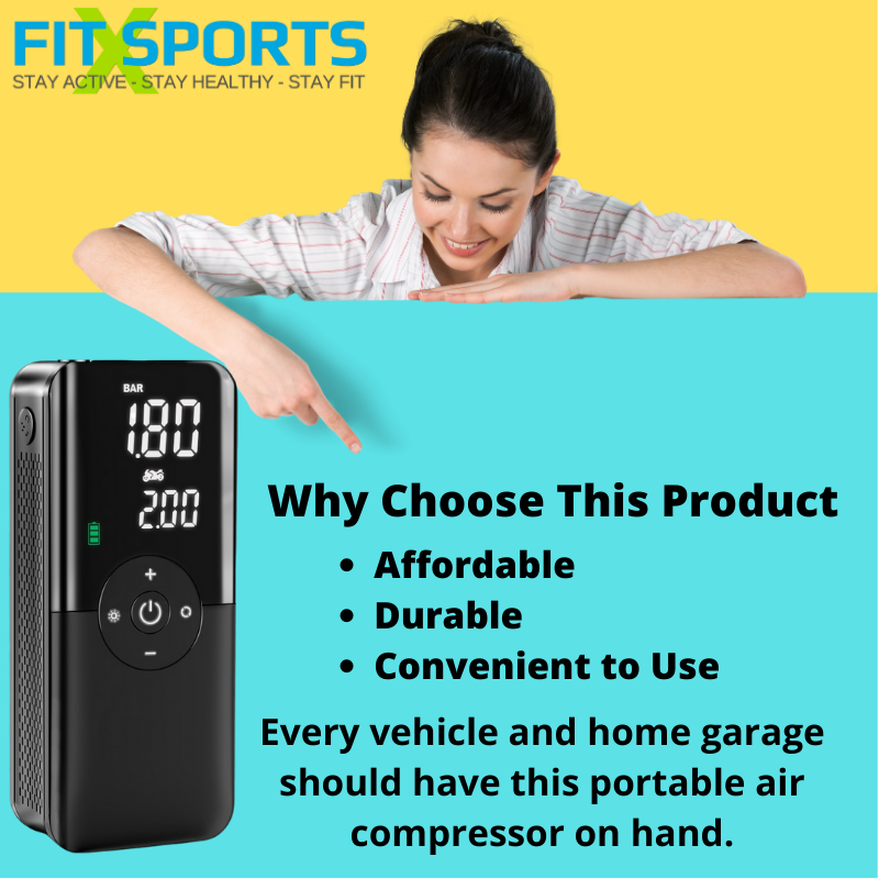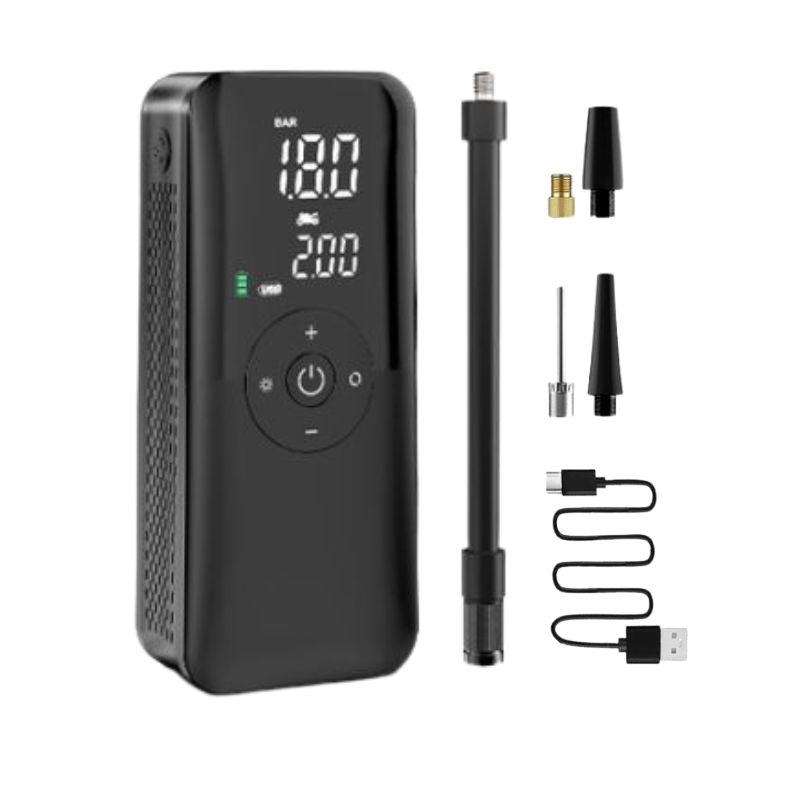 Portable Air Compressor Rechargeable Portable Bicycle Tire Pump 150 PSI Cordless for Car Tires Bicycles Balls LCD Dual Screen